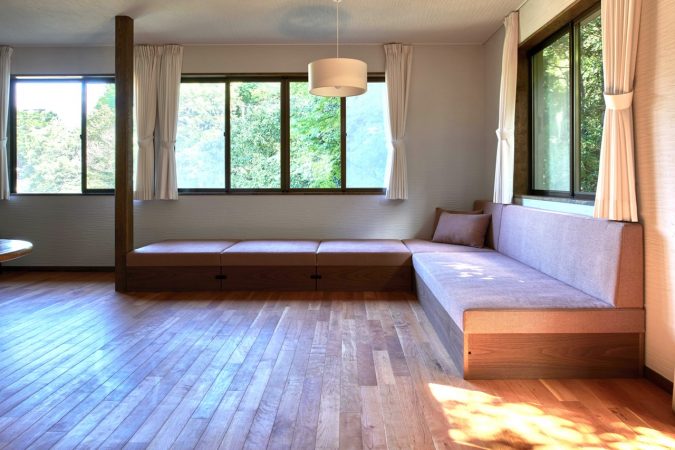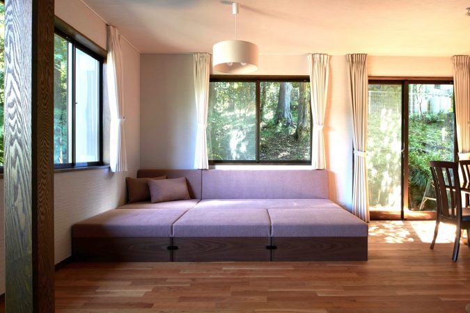 各セクションにソファは分かれていて、配置を変えるとベッドになります!