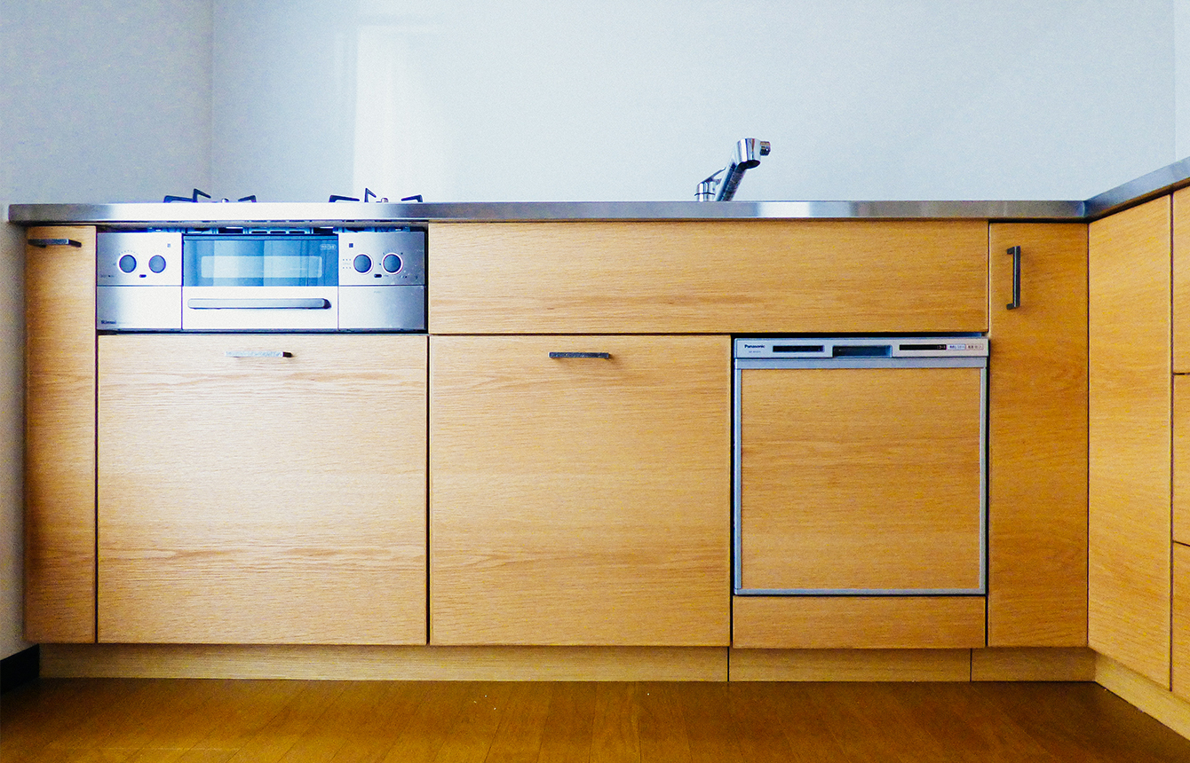マンション購入時のオプションではイマイチだった?一生使えるキッチンの壁面収納。