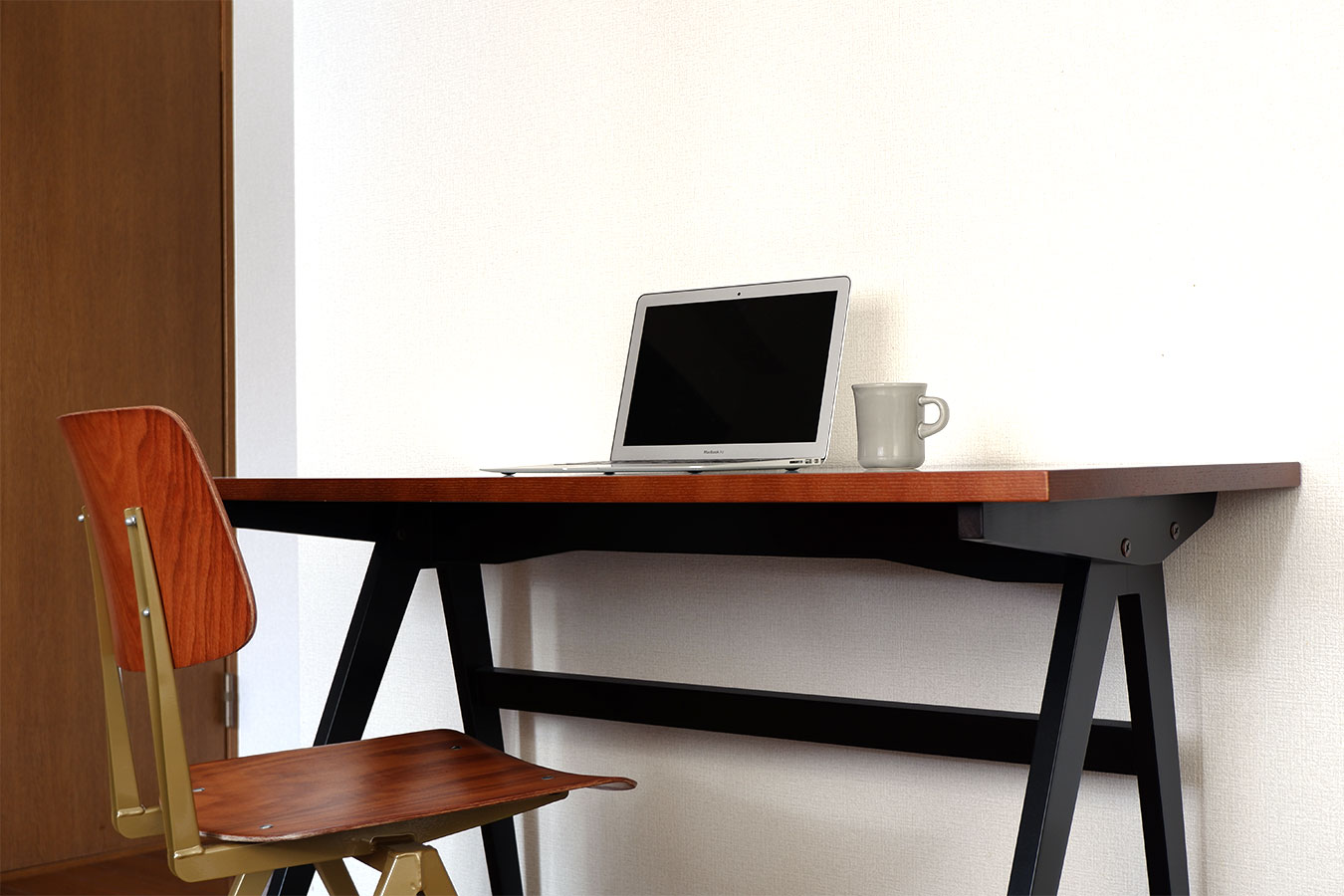 引き出しなどの収納も全て無しにして機能的な部分は最小限に抑えています。実際、ノートパソコンを広げてストレス無く作業ができれば機能としては十分ですので、プロポーションの良さに狙いを定めてデザインしました。