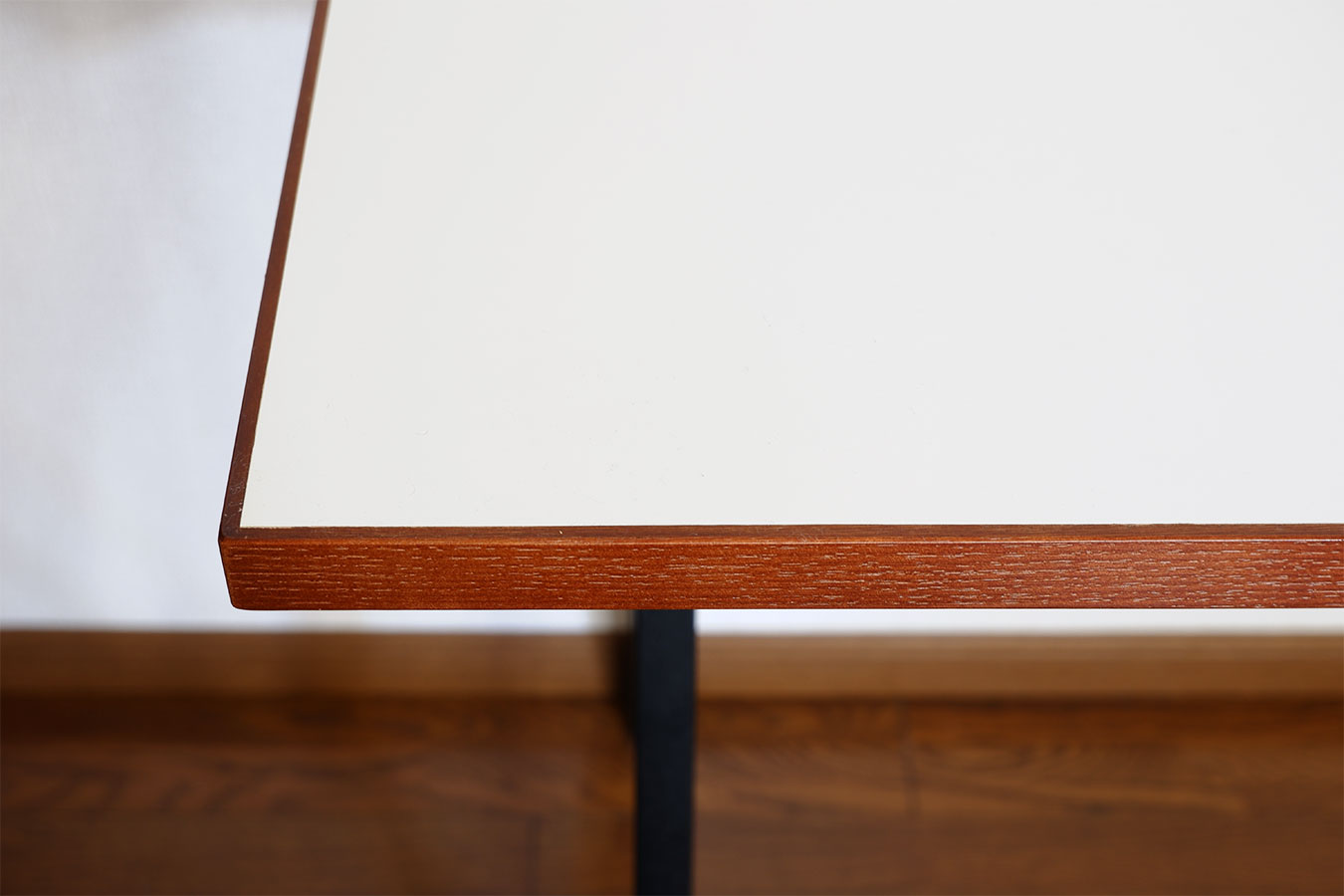 この時代に作られたこういった形状のデスクは脚部は金物の場合が多いのですが今回は木製で制作。