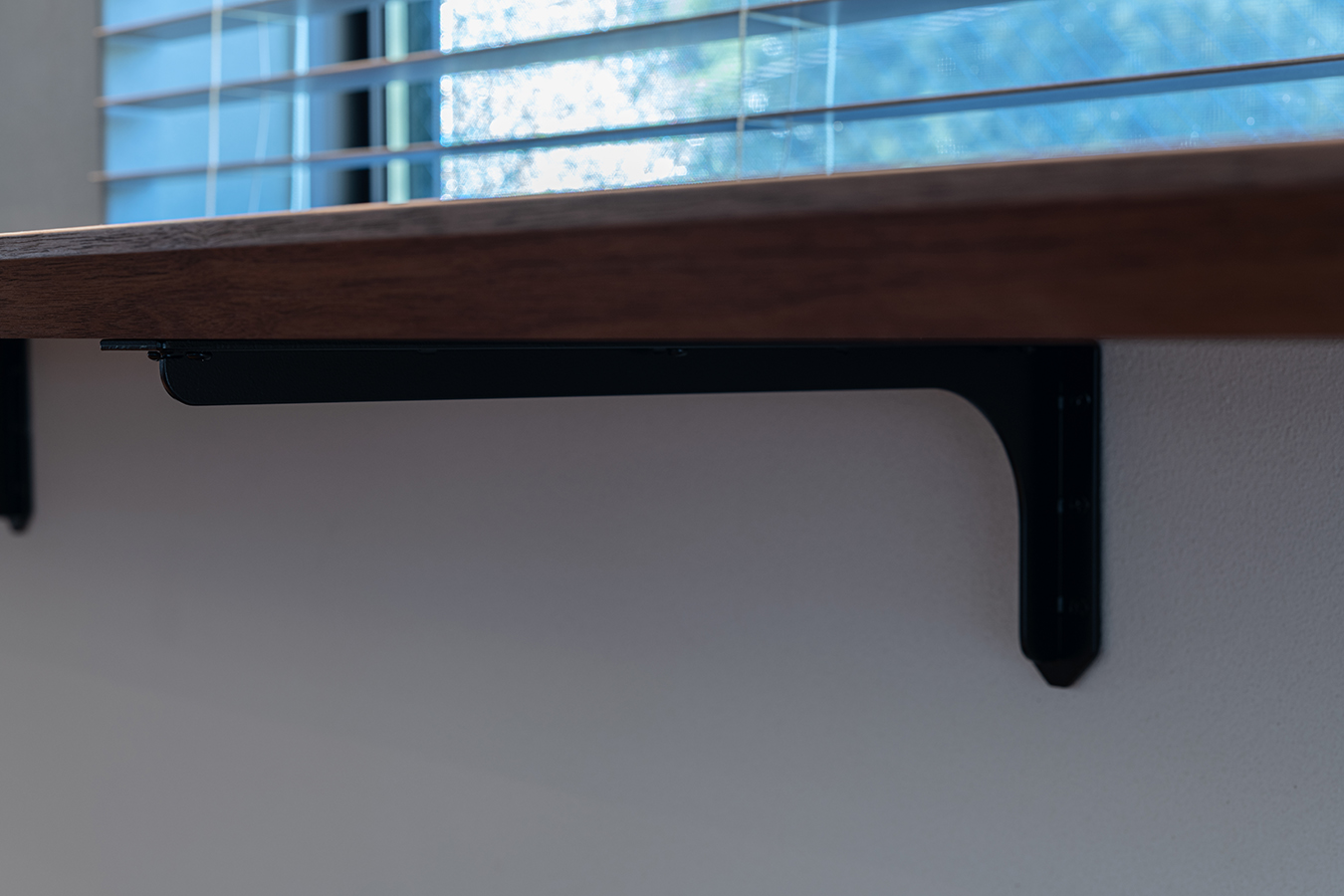 また目立つ部分では無いものの天板下に壁付されているブラケットは特注のデザインとなっております。強度を保つ為でもありながら全体の意匠を力強くする