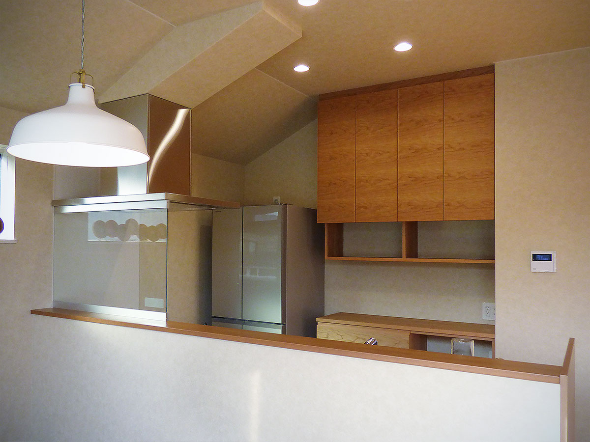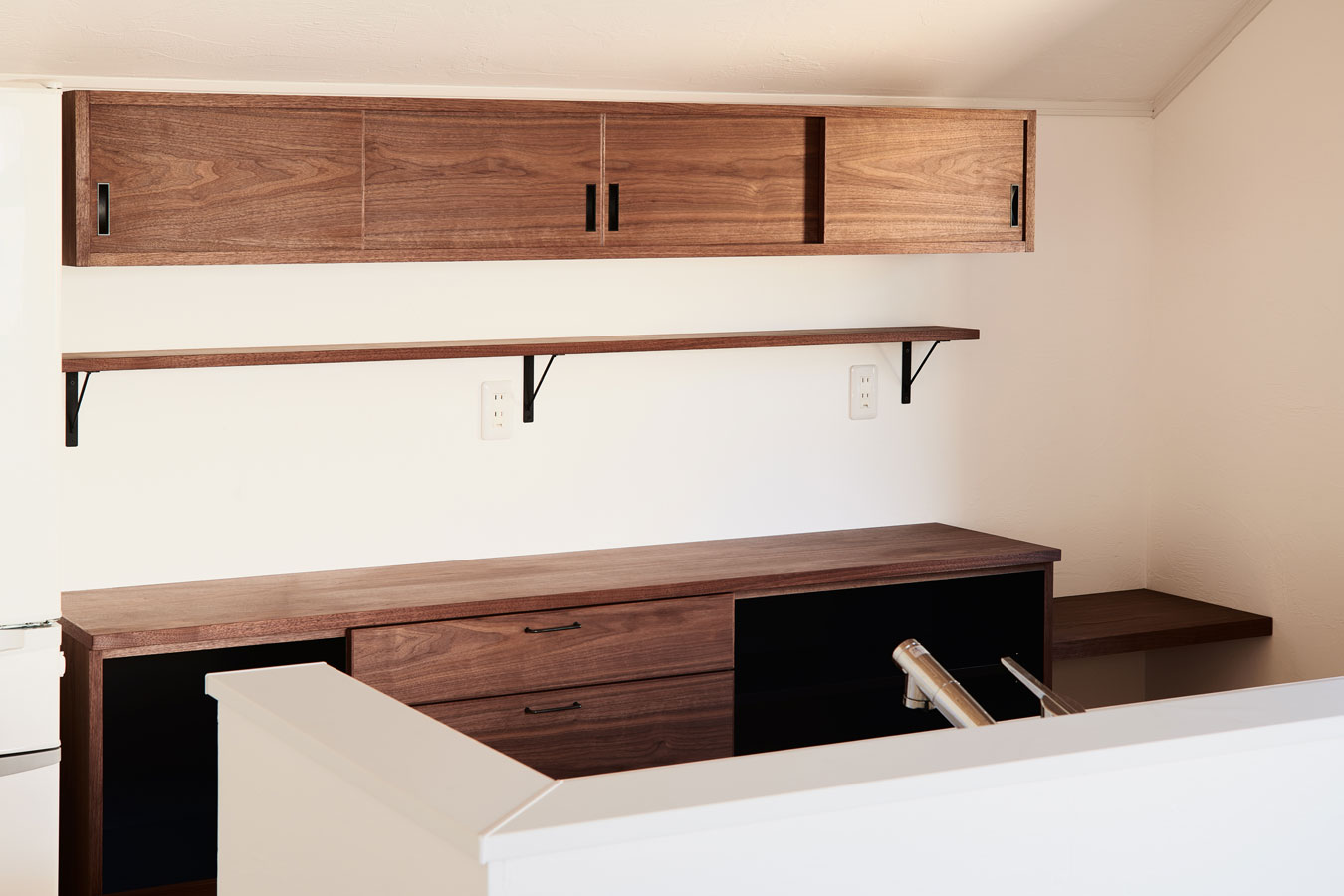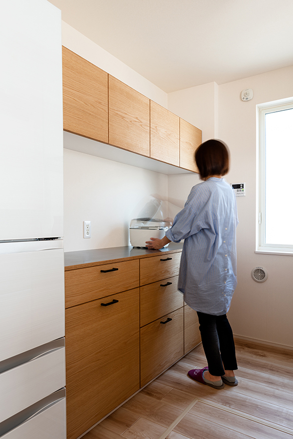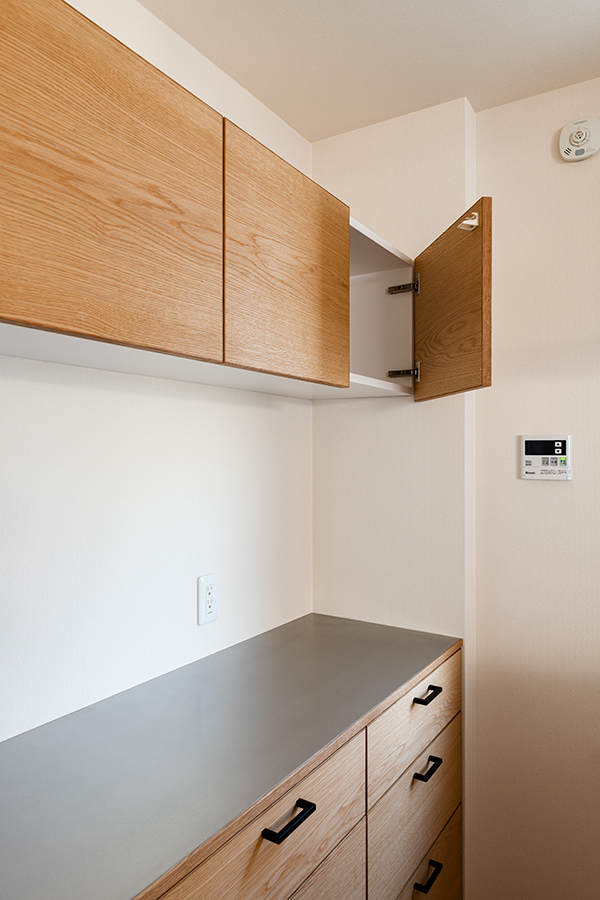 そういったご要望の経緯もあって通常より吊り戸棚はサイズダウンさせました。
