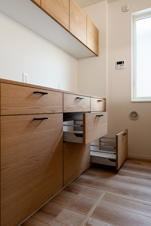 出来るだけモノを増やしたくないライフスタイルに合わせた収納計画、デザインとなっています。