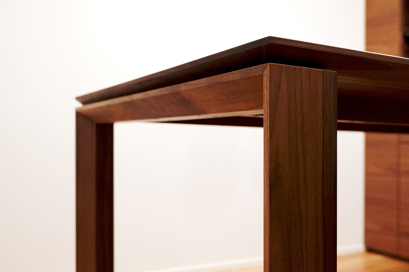 お客様に非常に具体的なイメージがございましたので頂いた情報をもとにディテールを詰めていきました。木目の流し方とテーブルの形状はお客様のこだわりです。