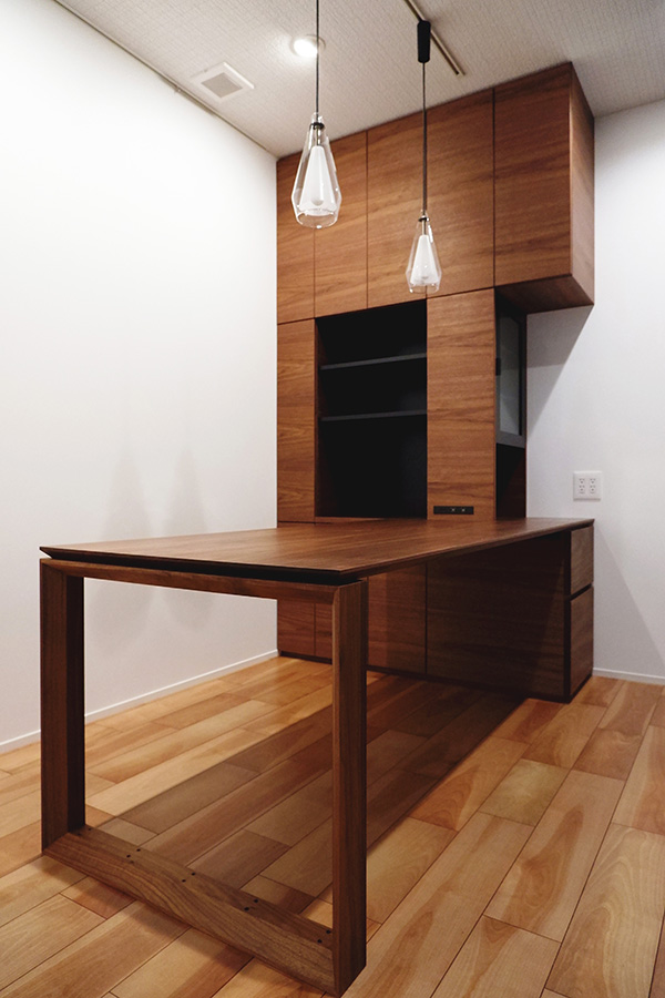既製品家具ではなかなか実現できないレイアウトもフルオーダーの家具であれば実現ができる好例ではないでしょうか。