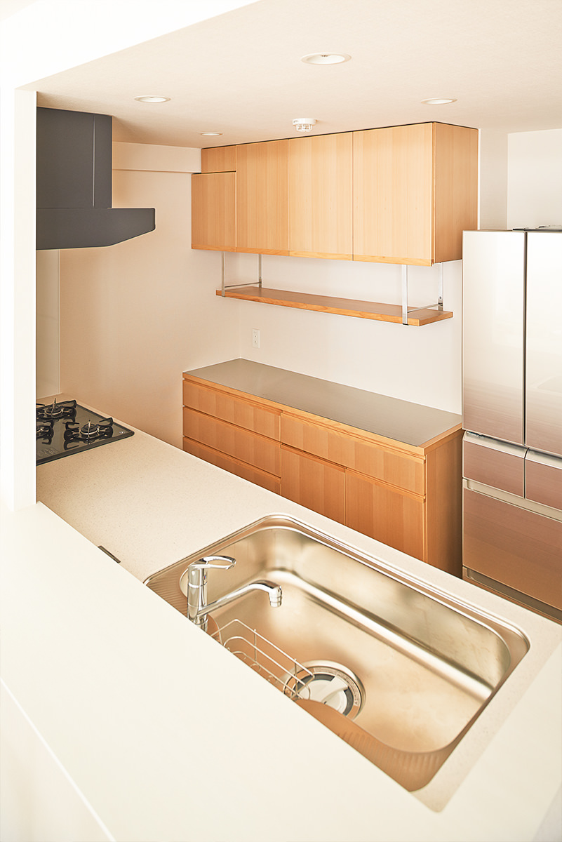 マンションをご購入されたお客様のお引っ越しに合わせてキッチンの壁面収納を制作致しました。