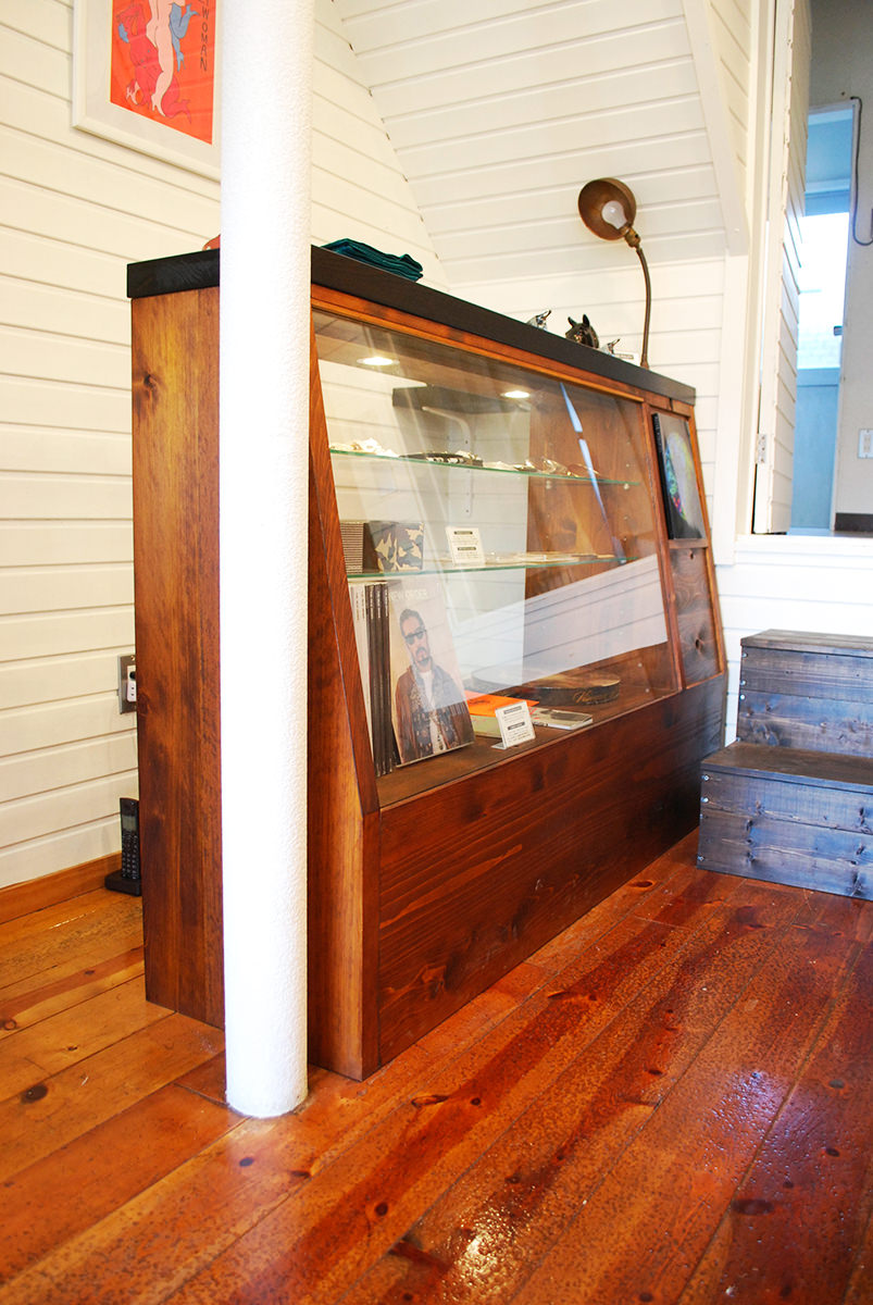 什器はオーナー様のこだわりで木部は全てヒノキ無垢材。和風のイメージが強いヒノキですが、材料の選び方や塗装など仕上げ方で西海岸風とでも言いましょうか、カジュアルな印象を作り出せます。