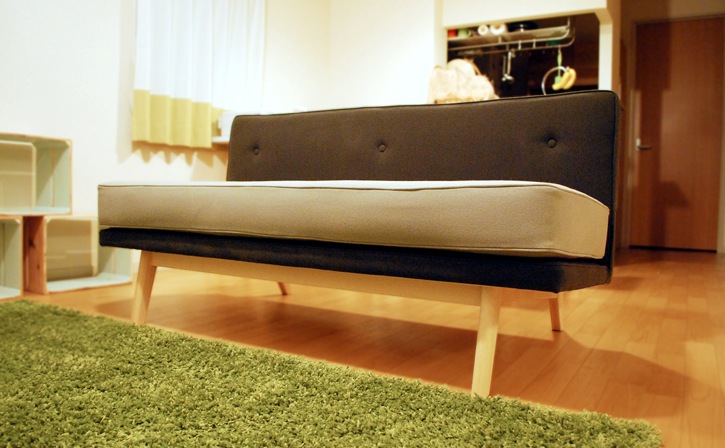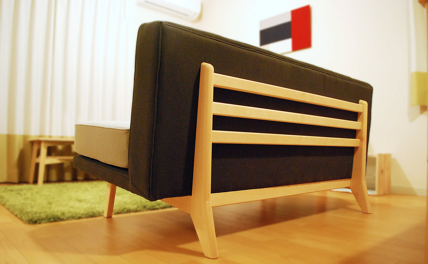 若いご夫婦からソファのオーダーを頂きました。現在は賃貸のご自宅に住まわれているため小ぶりで引っ越しの際にも持っていきやすいサイズでとご注文を頂きました。