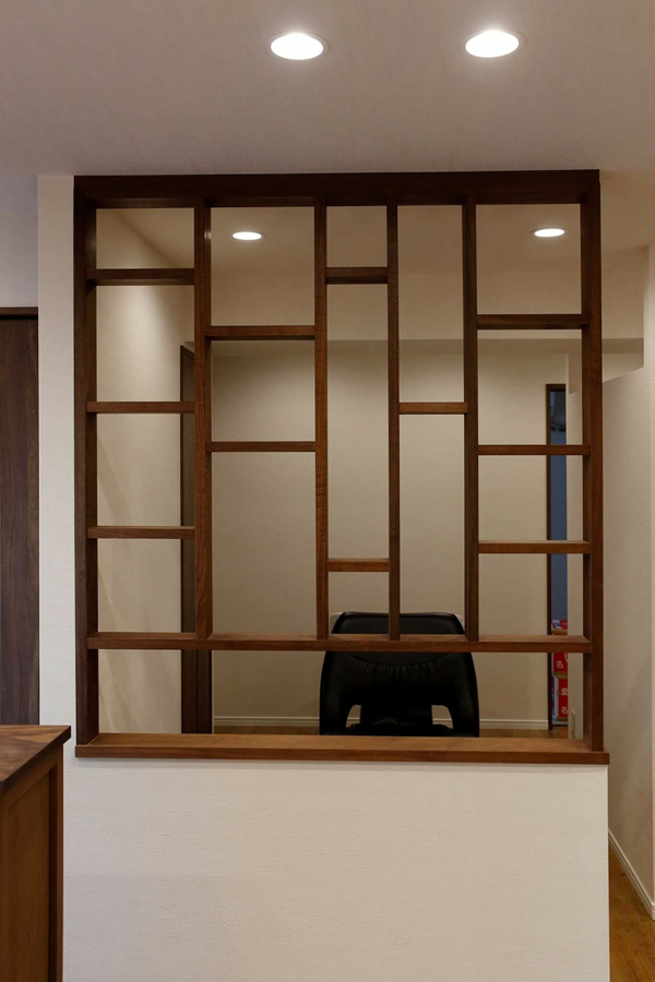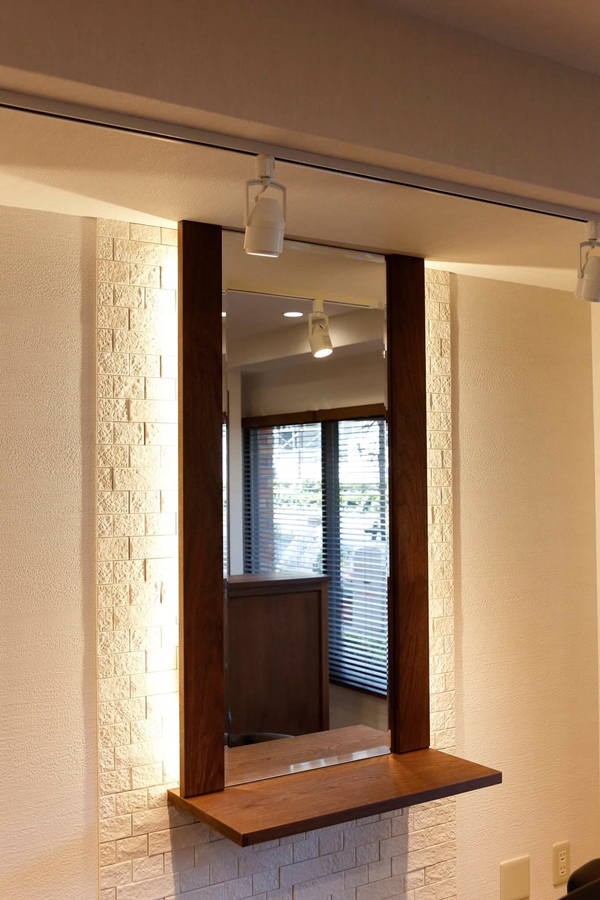 今回クラフトワークではウォルナットによるレジ台・鏡面台・パーテーションの制作を担当させて頂きました。
