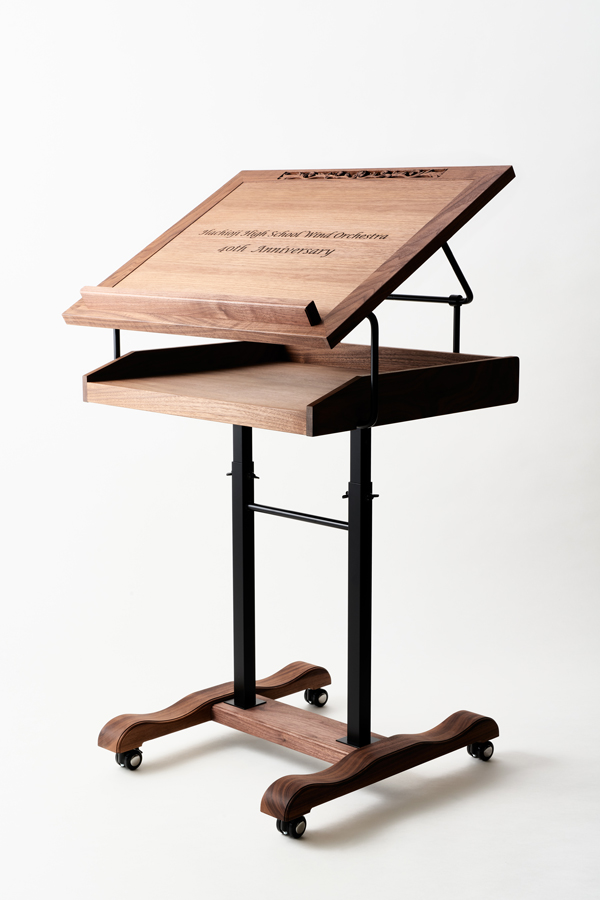 八王子高校の吹奏楽部40周年を記念して40期生保護者一同様より譜面台、現役40期生一同様より指揮者椅子のオーダーを頂きデザイン、制作致しました。