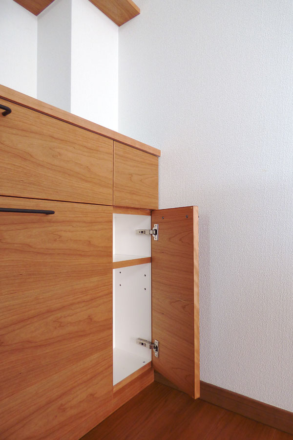 戸建のご自宅にぴったりと合う物が無いとの事で、キッチンスペースに合わせた収納をご依頼いただきました。